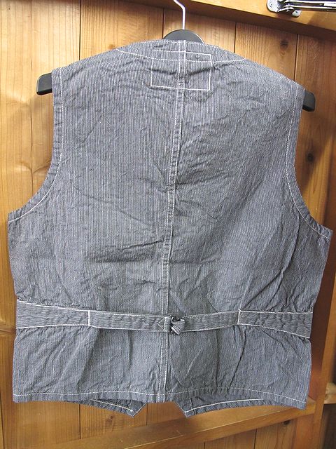 | COMMENT | : | -SUGAR CANE JEAN CORD WORK VEST- シュガーケーン ジーンコード ワークベスト コットン100%のジーンコード 織り柄の細いストライプと しっかりとした素材感が特徴です。 ウエスト部は背中バックストラップで 調整可能!! |