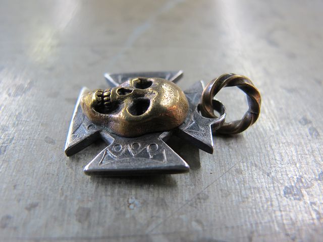 | COMMENT | : | -HATCHET METAL WORK STUDIO- IRON CROSS TOP ハチェット メタル ワーク スタジオ アイアンクロス トップ アイアンクロスがモチーフの ペンダントトップです。 手作りの鏨で模様を打ち込んでいます。 |
