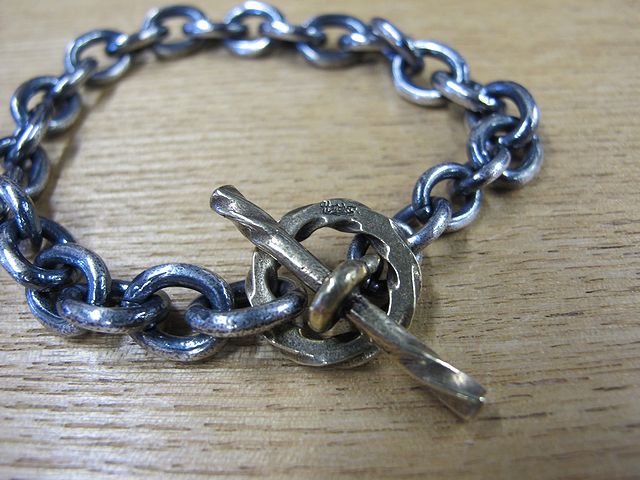 | COMMENT | : | -HATCHET METAL WORK STUDIO- "SilverPlating" Bracelet ¥8,800(税込) 真鍮のチェーンにシルバーメッキを 施したチェーンブレスレットです。 エンドパーツは真鍮製となります。 その名の通り銀メッキですので 一般的なロジウムメッキとは違い、 本物のシルバーと同様に燻し加工が 可能となっております。 経年変化もお楽しみ頂けます。 バイクや自転車などに乗る時に 出来るだけ 振動や激しい動きから 外れるリスクを減らす為に 棒のパーツを少し長めに製作しています。 |