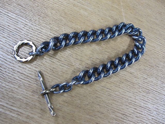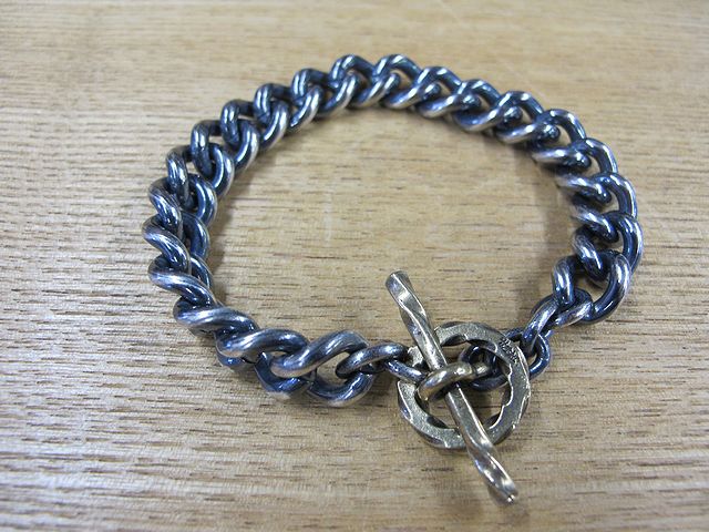 | COMMENT | : | -HATCHET METAL WORK STUDIO- "SilverPlating" Bracelet ¥9,900(税込) 真鍮のチェーンにシルバーメッキを 施したチェーンブレスレットです。 エンドパーツは真鍮製となります。 その名の通り銀メッキですので 一般的なロジウムメッキとは違い、 本物のシルバーと同様に燻し加工が 可能となっております。 経年変化もお楽しみ頂けます。 バイクや自転車などに乗る時に 出来るだけ 振動や激しい動きから 外れるリスクを減らす為に 棒のパーツを少し長めに製作しています。 |